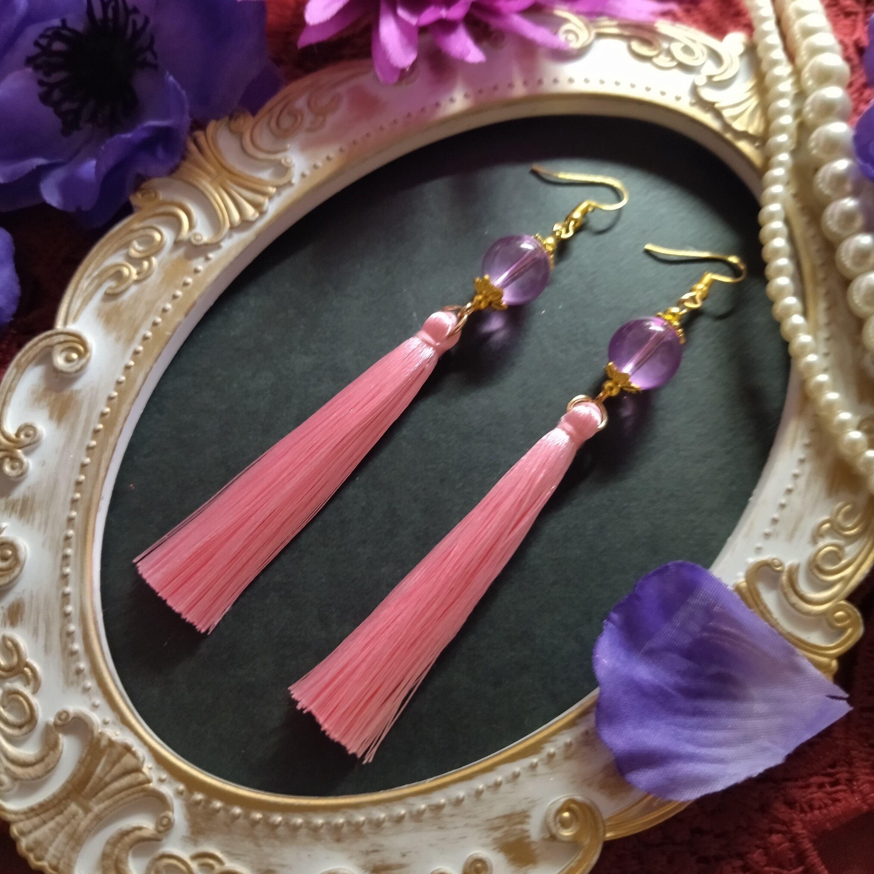 ガラス玉とタッセルのピアス(薄ピンク)(イヤリング)【中華風】【チャイナ】【和風】【推し色】【推し活】【成人式】【卒業式】【着物】【袴】【浴衣】
