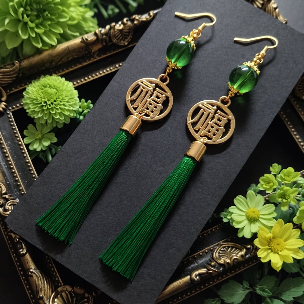 タッセル チャイナ 中華風 チャイナドレス 赤 青 ピンク 黄色 緑 紫 白 黒 水色 推し活 推し色 プレゼント ギフト ハロウィン イヤリング 華ロリ 中華風コーデ チャイナコーデ 漢字 幸福 福 和風 和装 着物 浴衣 袴 和装コーデ 着物コーデ アレルギー対応
