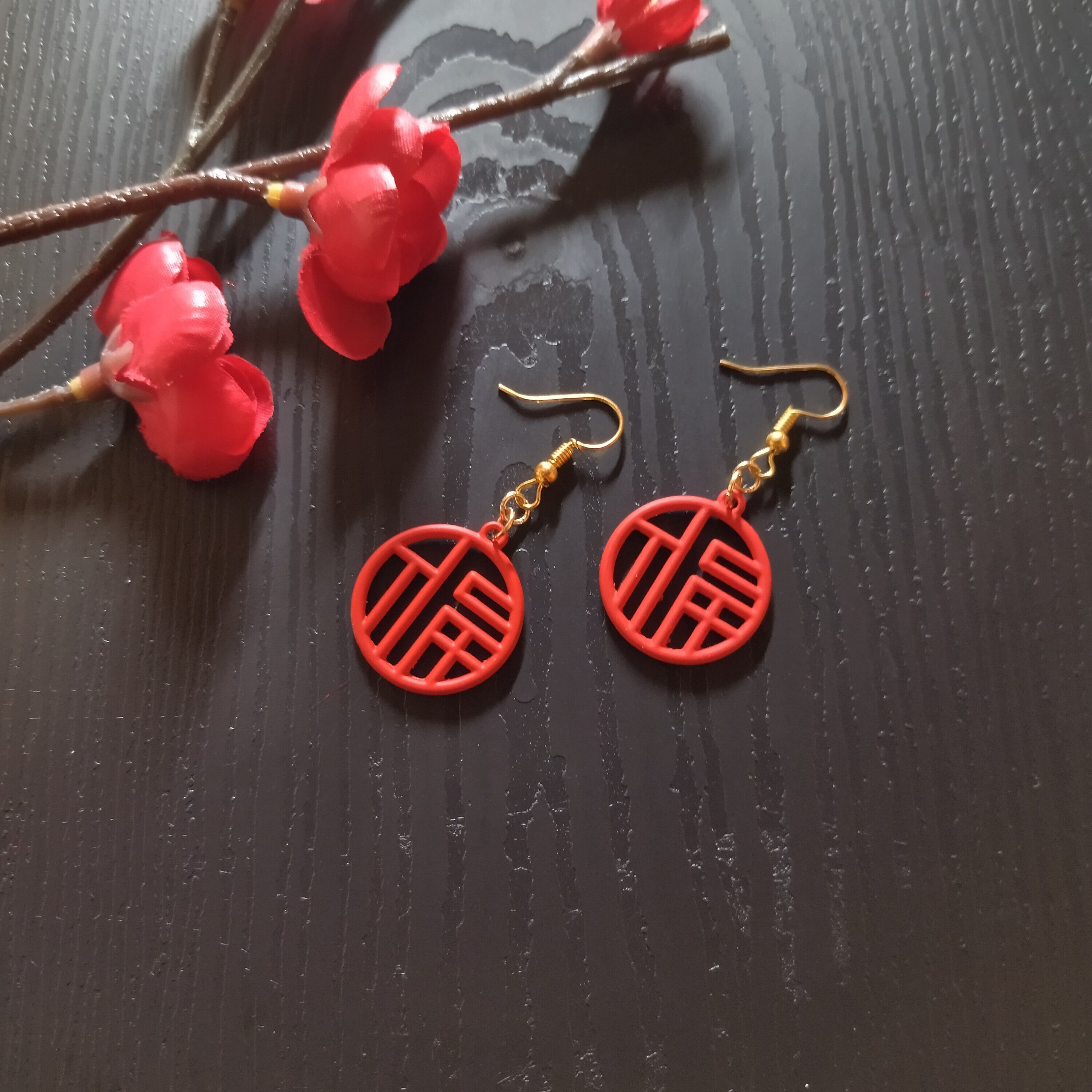 福ピアス(赤)(イヤリング)【チャイナ】【中華風】