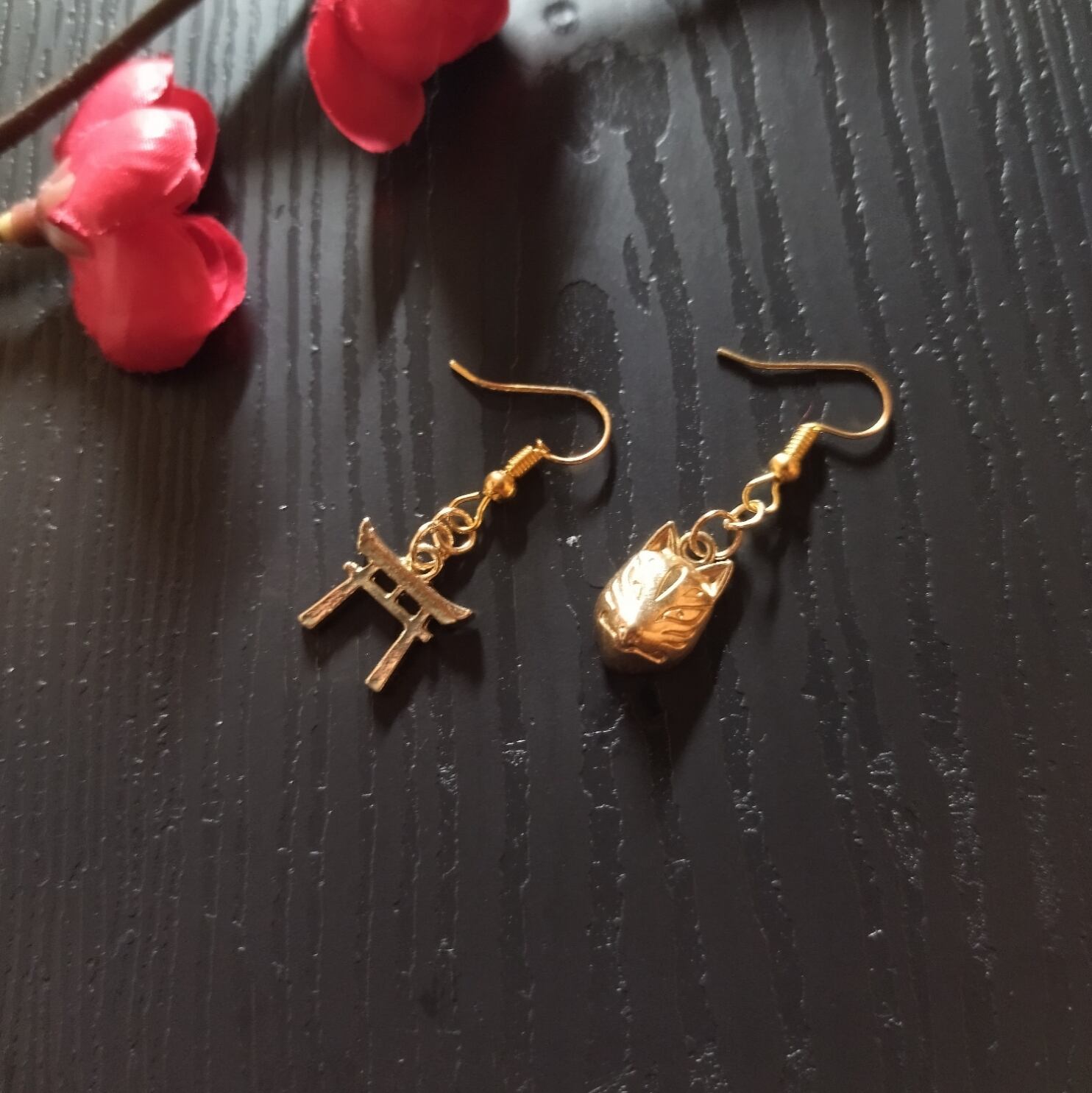 狐面と鳥居のチャームを組み合わせたシンプルなピアスです。さりげなく和を取り入れたい方におすすめです(^_^)