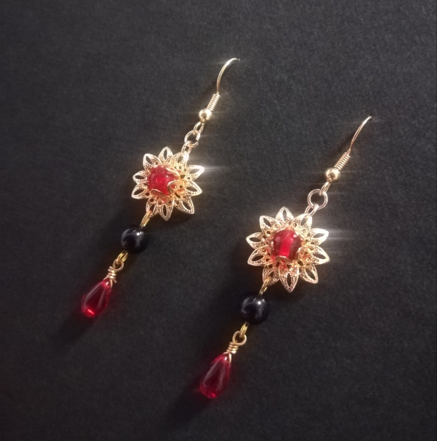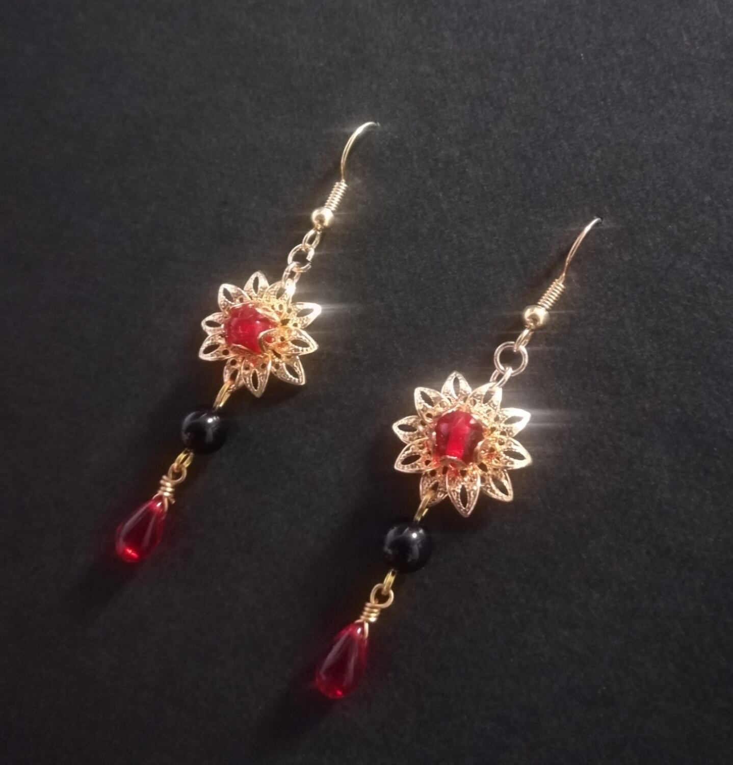 【中華風】【チャイナ】蓮の華とチェコビーズのピアス(イヤリング)【和風】