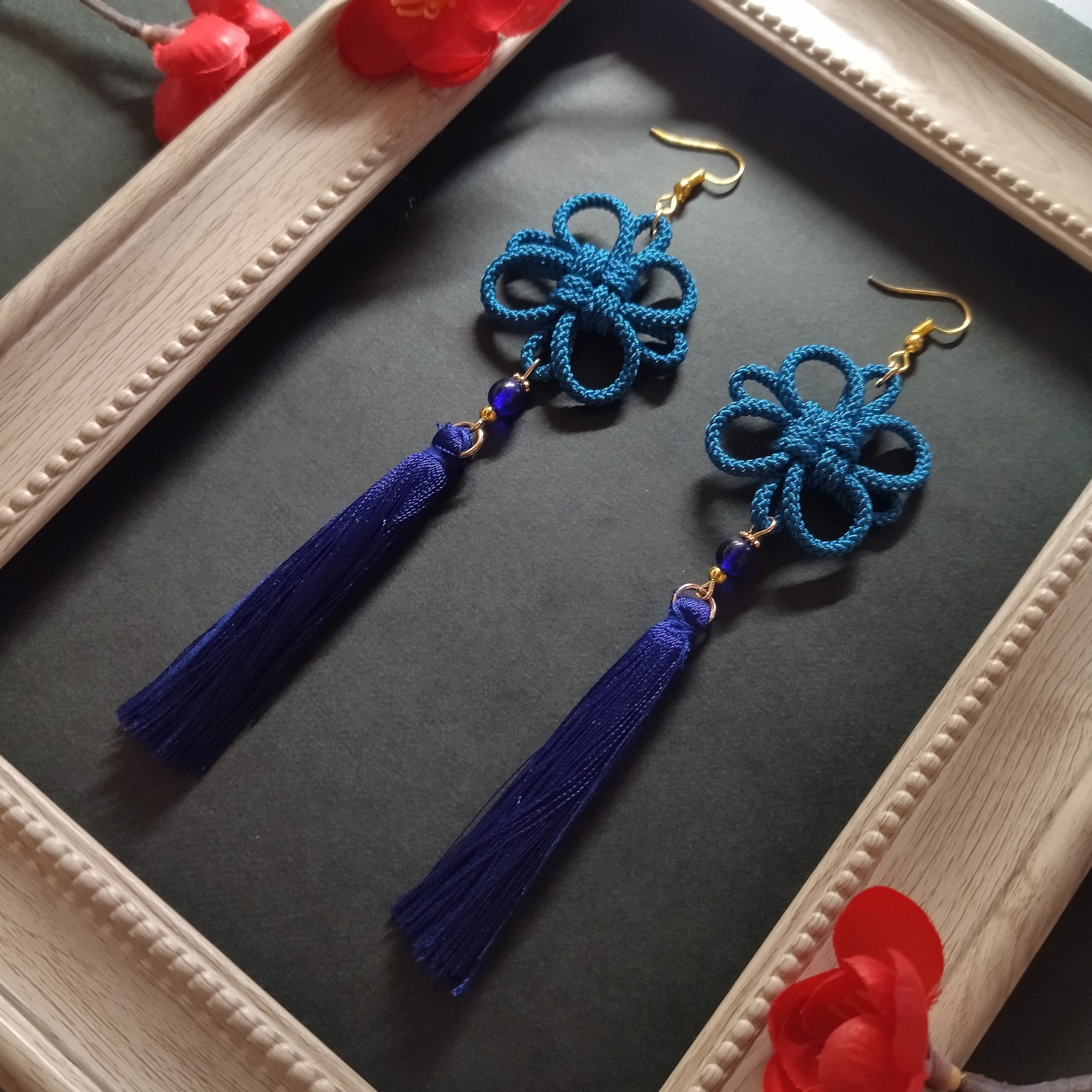 【太】吉祥結びとタッセルのピアス(イヤリング)(青)【和ゴス】【チャイナ】【中華風】【成人式】【卒業式】【着物】【袴】