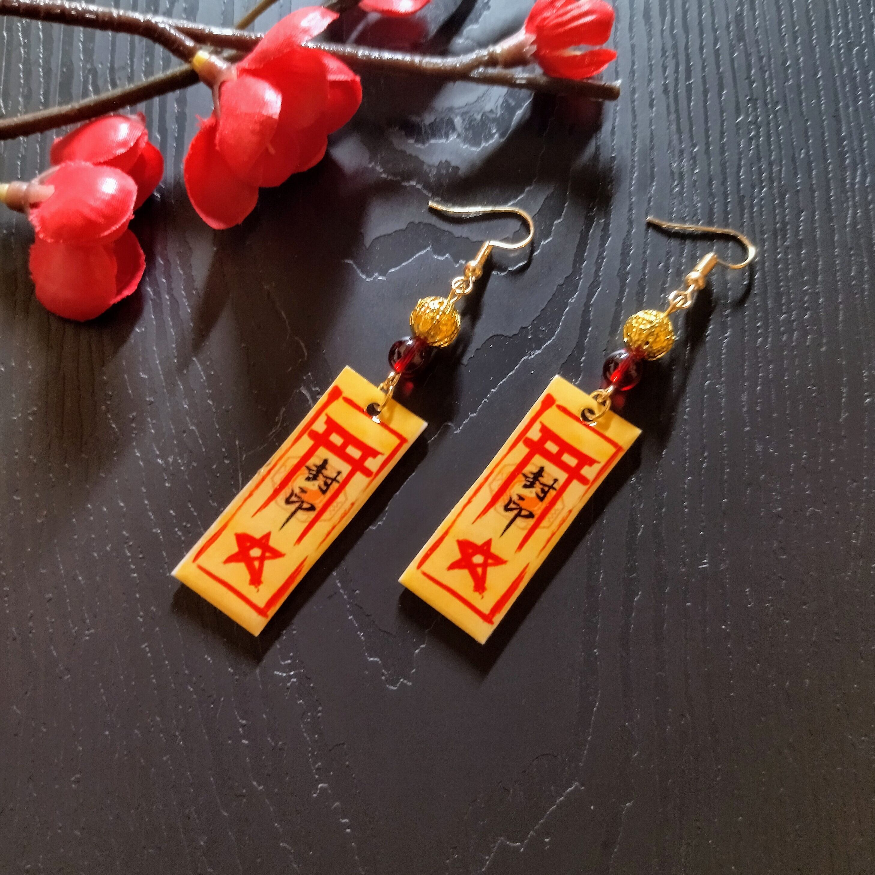 【和風】封印の御札モチーフピアス(イヤリング)【和ロリ】【和ゴス】【着物】