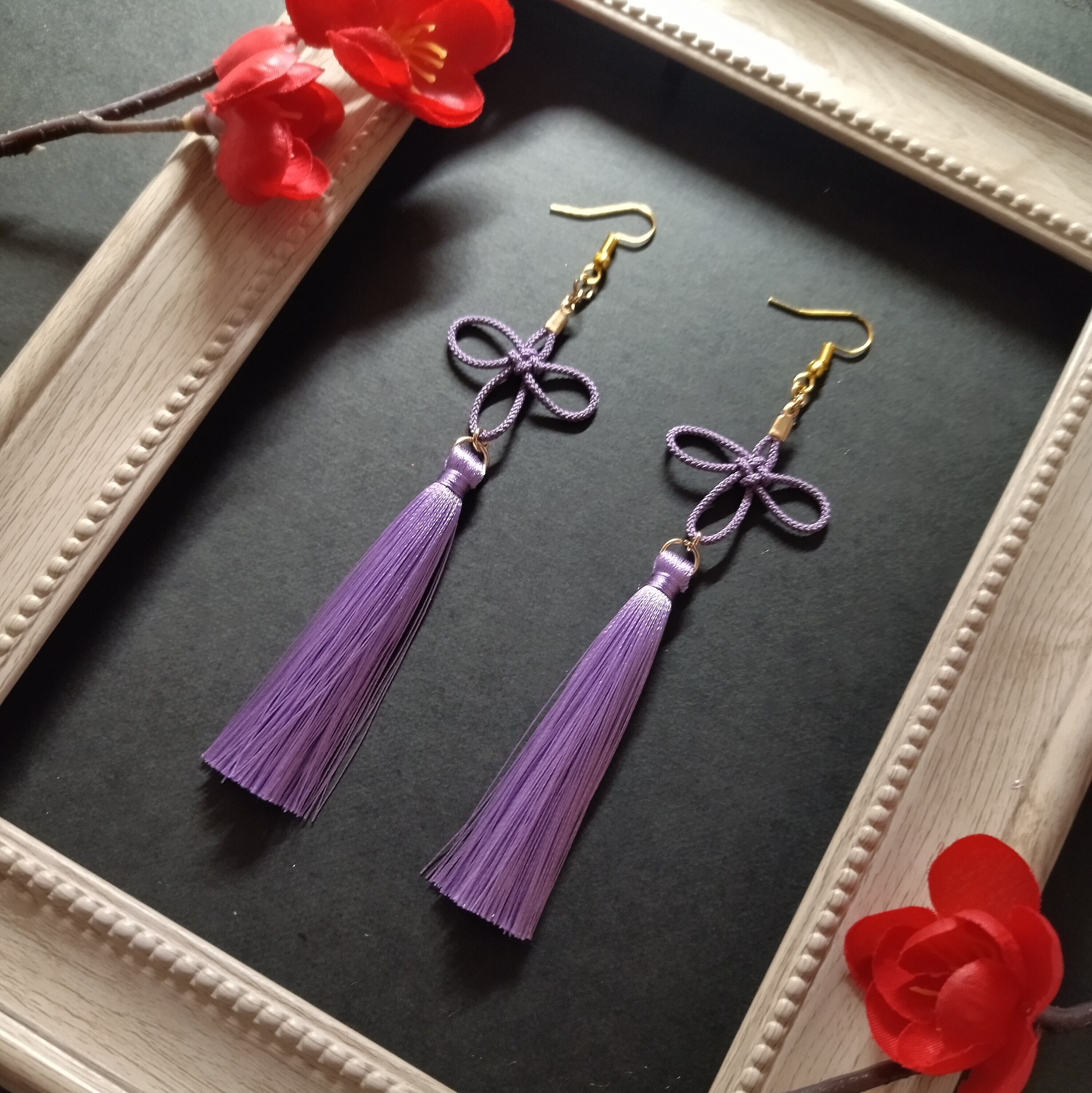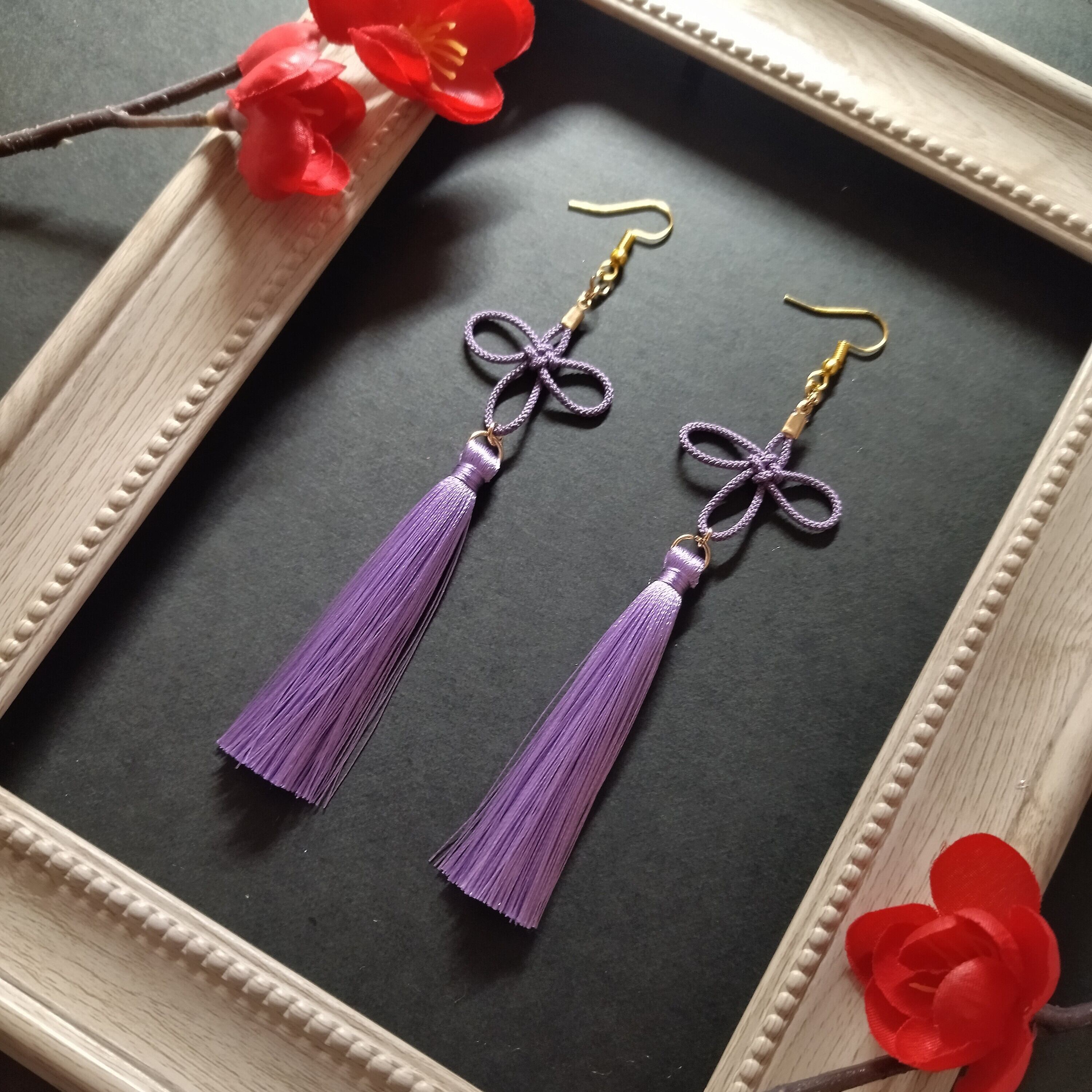 【和風】几帳結びとタッセルのピアス(イヤリング)(薄紫)【チャイナ】【和ロリ】【和ゴス】【アジアンノット】