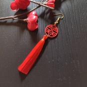 【チャイナ】【片耳】双喜紋とタッセルのピアス(赤)【中華風アクセサリー】【華ロリ】