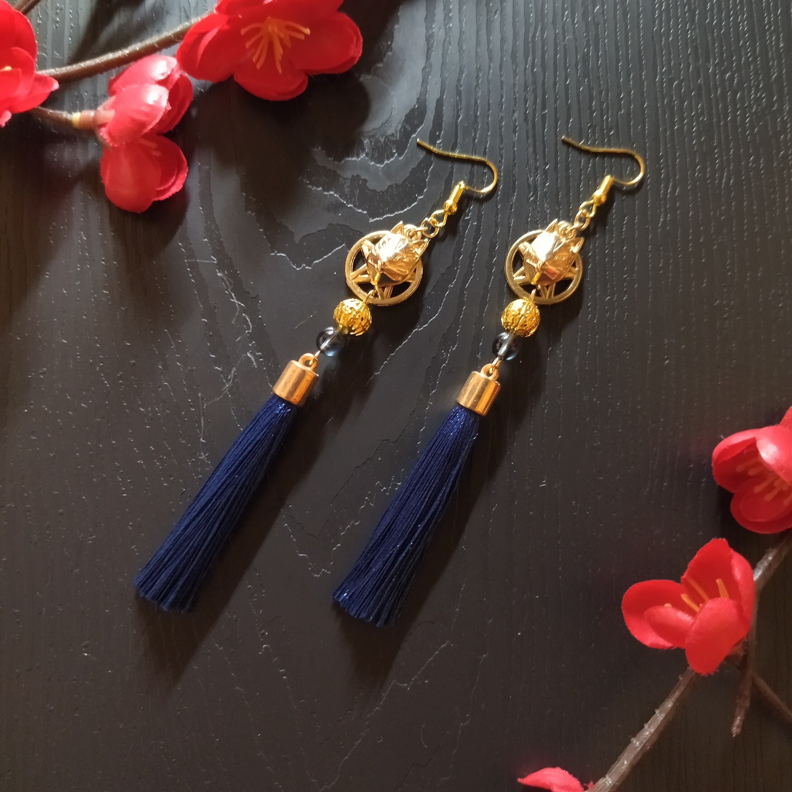 【和風】狐面とタッセルのピアス(紺)(イヤリング)【チャイナ】【着物】【浴衣】【アジアン】【袴】