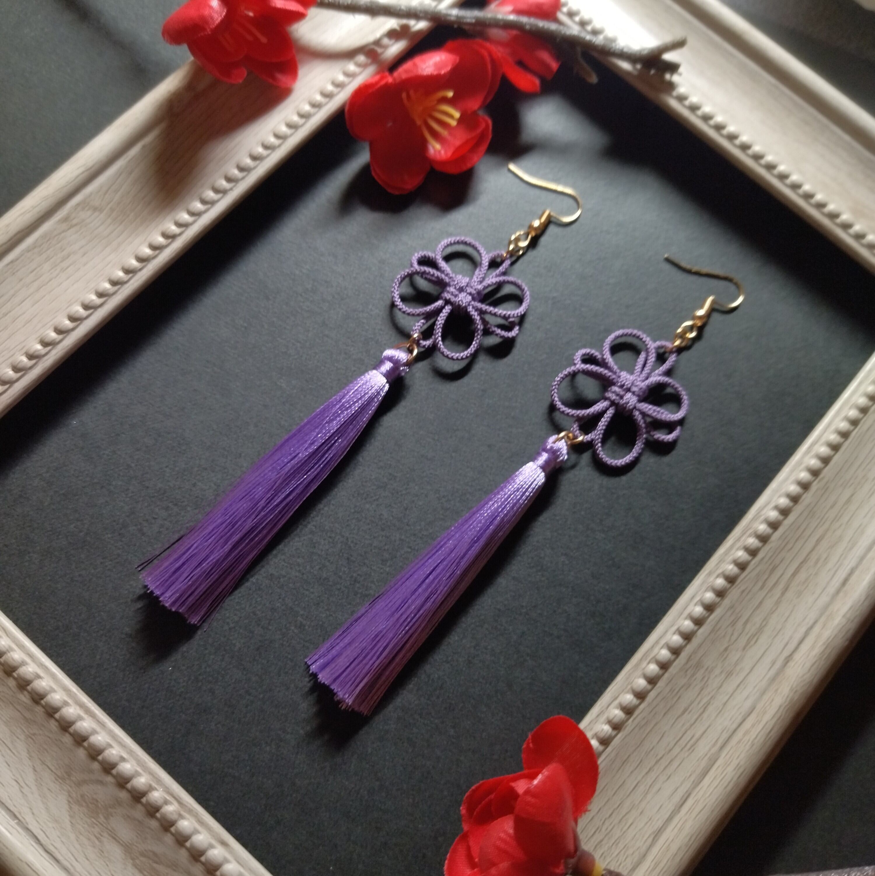 吉祥結びとタッセルのピアス(イヤリング)(薄紫)【和ゴス】【チャイナ】【中華風】【和風】【成人式】【卒業式】【着物】【浴衣】【和装】【袴】