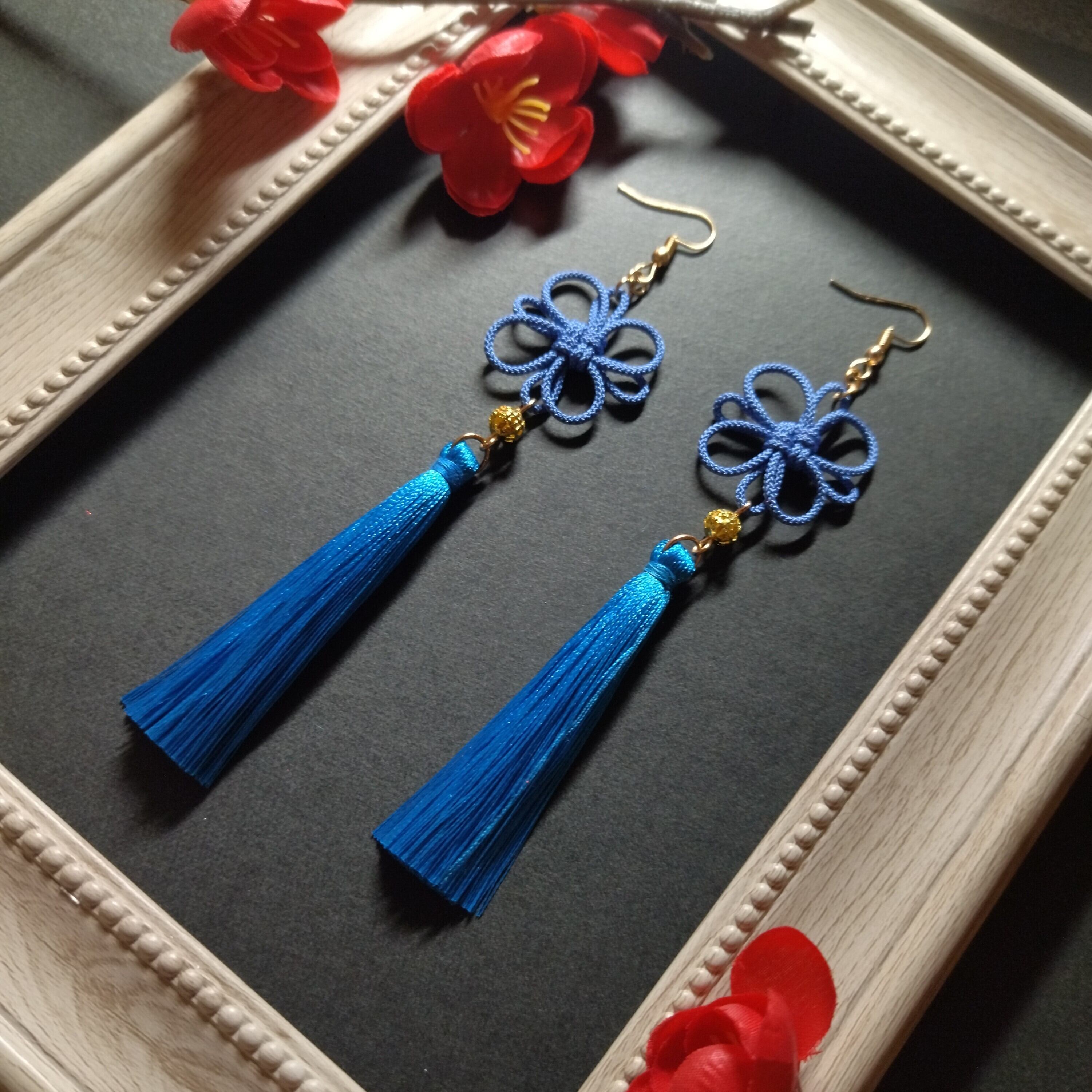 アジアンコード(1mm)で作った吉祥結びとタッセルを組み合わせたピアスです。飾り結びのピアスといえばこの形を思い浮かべる方も多いのではないでしょうか?