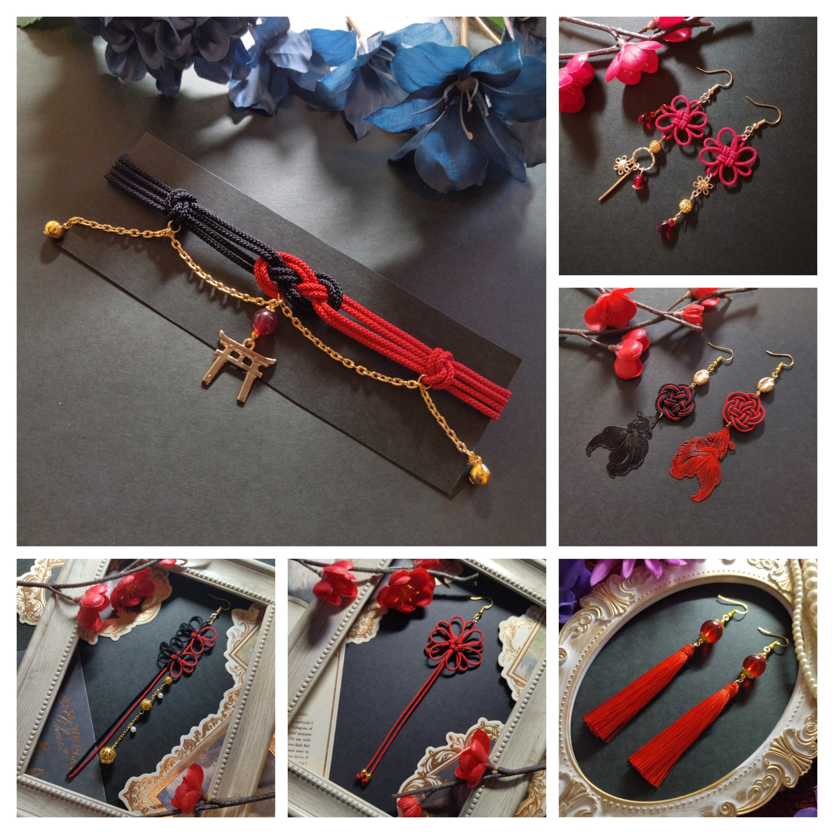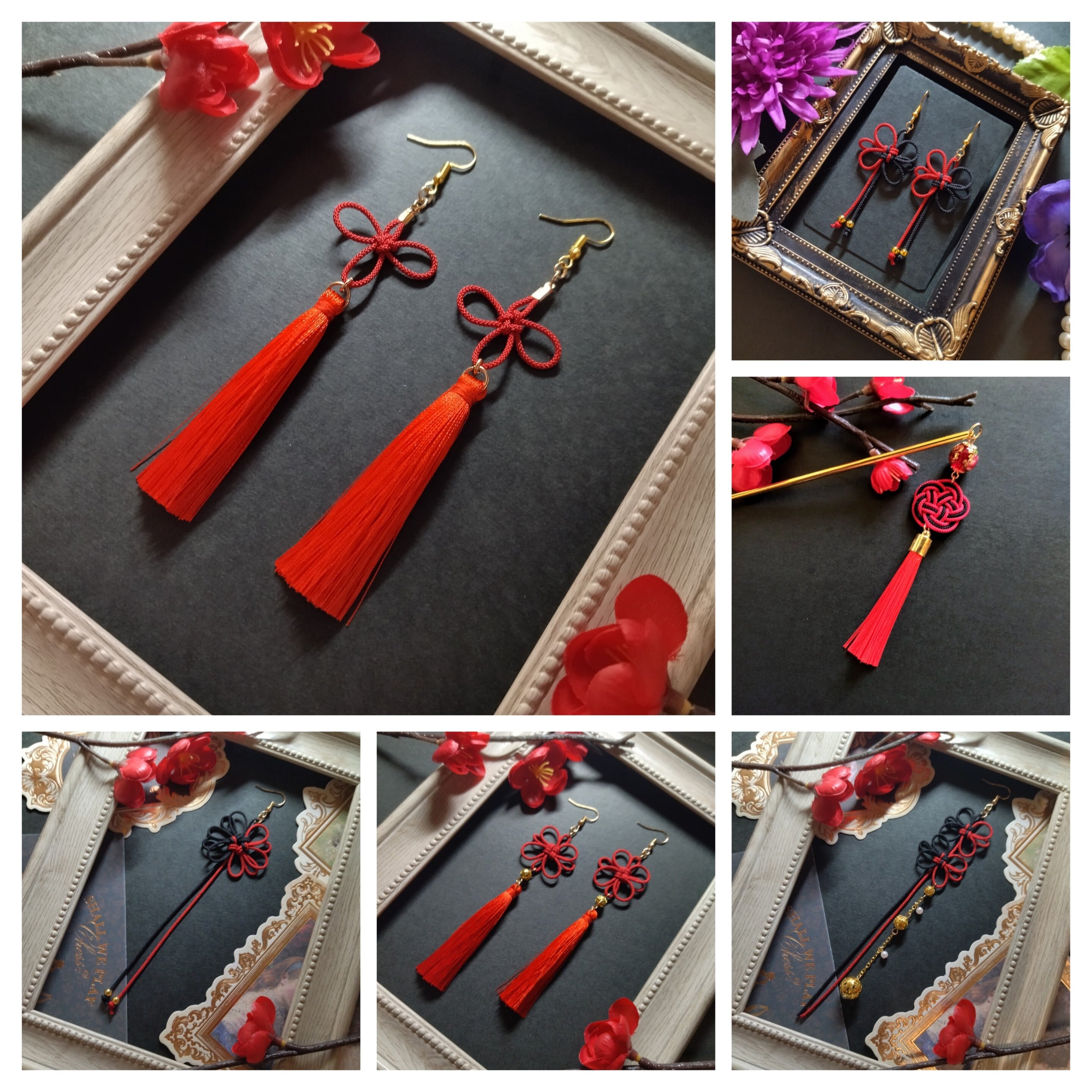 和風 チャイナ 中華風 和 チャイナ風 飾り結び 簪 かんざし チョーカー ピアス イヤリング 紐 サブカル 和ゴス 華ロリ お祭り 華ロリ 和風ファンタジー 中華風ファンタジー 赤 青 ピンク 黄色 緑 紫 白 黒 推し活 推し色